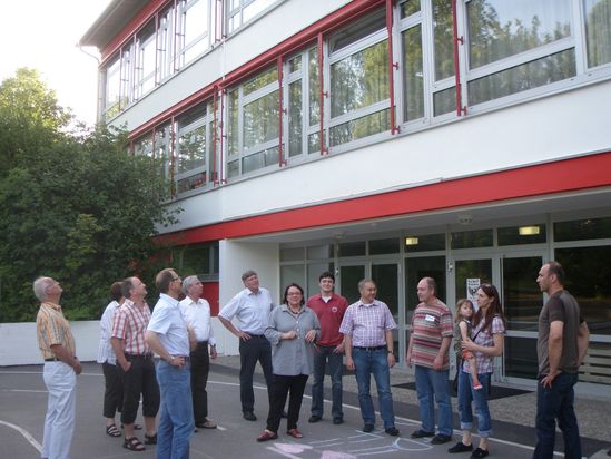 90 Min. dauerte der Rundgang, bei welchem sich die Kandidaten unter der Führung von Ewald Schilling etwas besser mit dem Schwaigerner Ortsteil Stetten vertraut machten. Los ging es am Parkplatz am Ortseingang, an der Friedhofsmauer vorbei zur Stettener Grundschule, welche sich nach dem Brand äußerlich wieder in sehenswertem Zustand darbot.