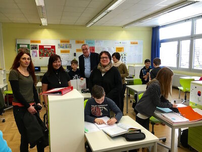 Zu einem Informationsgespräch trafen sich Mitglieder der SPD-Gemeinderatsfraktion und der Schulleiter der Leintalschule Manfred Litz vor Ort. Zunächst besuchten sie die Lernbüros und waren beeindruckt, wie selbstständig und konzentriert die Schülerinnen und Schüler arbeiten. SPD-Fraktionssprecher Rainer Dahlem ist überzeugt, dass die neuen Lernformen sich in Zukunft weiter durchsetzen und damit die individuelle Förderung jedes einzelnen Kindes weiter verbessert wird. Schulleiter Manfred Litz erläuterte in dem sich anschließenden Gespräch, dass die Leintalschule große Anstrengungen unternehme, für ihr Profil – nämlich Realschule und Gemeinschaftsschule unter einem Dach anzubieten – zu werben und viele Eltern von diesem Vorteil zu überzeugen. Er sei zuversichtlich, dass dies gelinge und erwarte eine Steigerung der Anmeldezahlen für das neue Schuljahr.